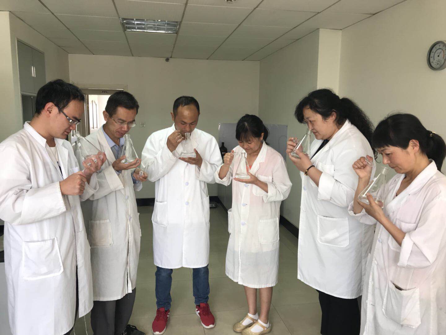 在為期三個月的嗅味課題研究中,正值水質(zhì)監(jiān)測中心每年最繁忙、檢測任務(wù)最多的時期,有威立雅全球?qū)嶒灡葘?、大量的年度檢測項目必須完成。嗅味測試小組成員克服困難,一邊完成自已的本職檢測工作,一邊開展嗅味科研工作。特別在第三階段的敏感性調(diào)查中,得到了整個水質(zhì)監(jiān)測中心所有同事,包括退休員工的大力支持。